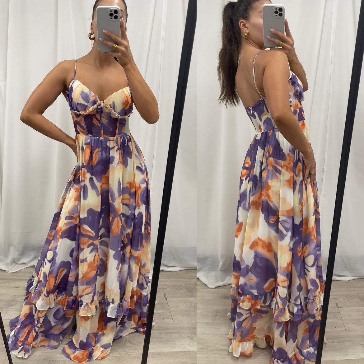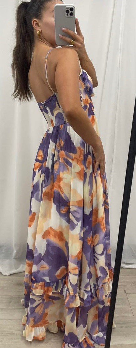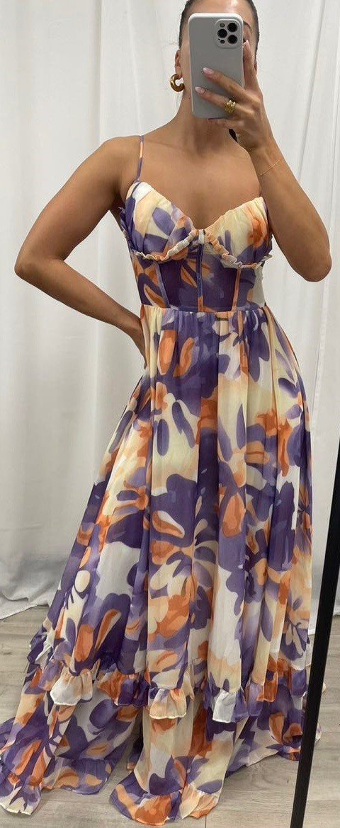 - Soft frills on both the skirt and bust, creating a romantic and flowy silhouette.