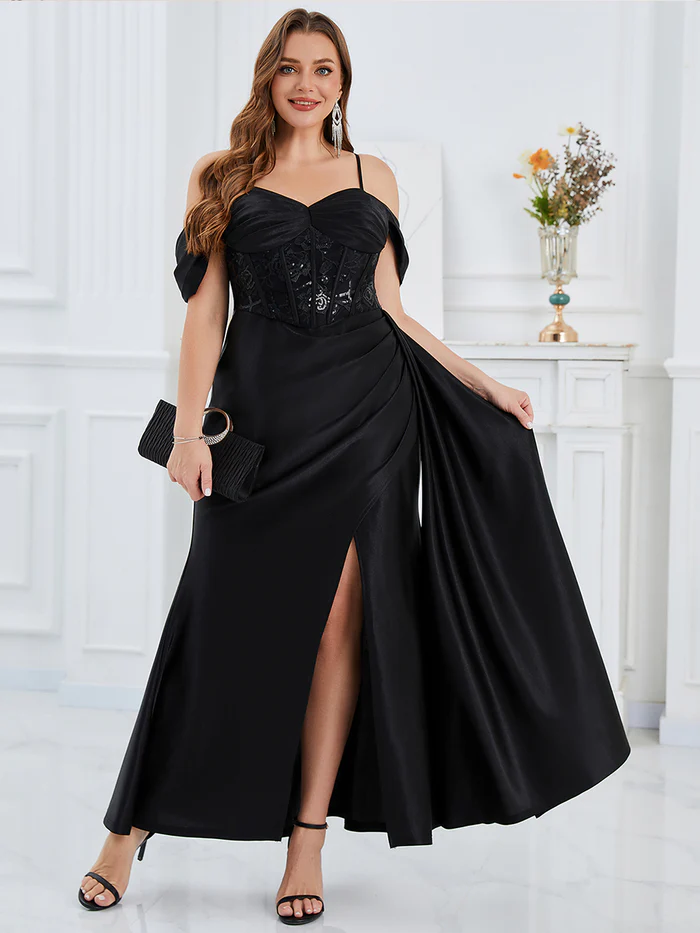 Thigh-High Split: A daring detail that adds a touch of allure, making this gown ideal for formal events and parties.