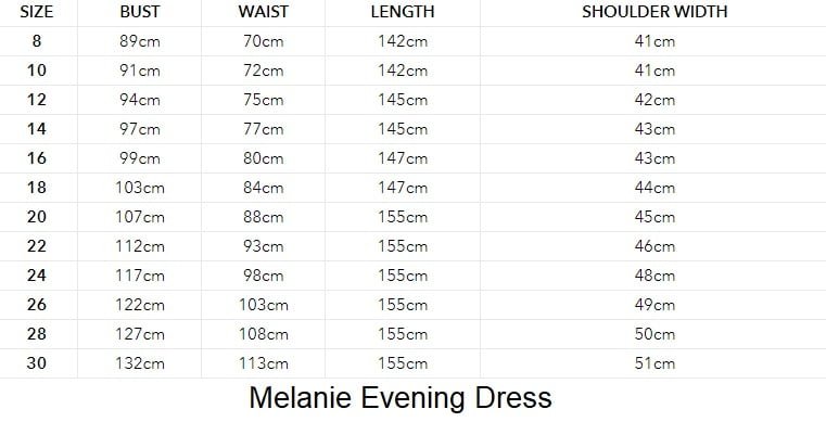 Melanie Evening Dress is a stunning and versatile option, designed to complement all shapes and sizes.