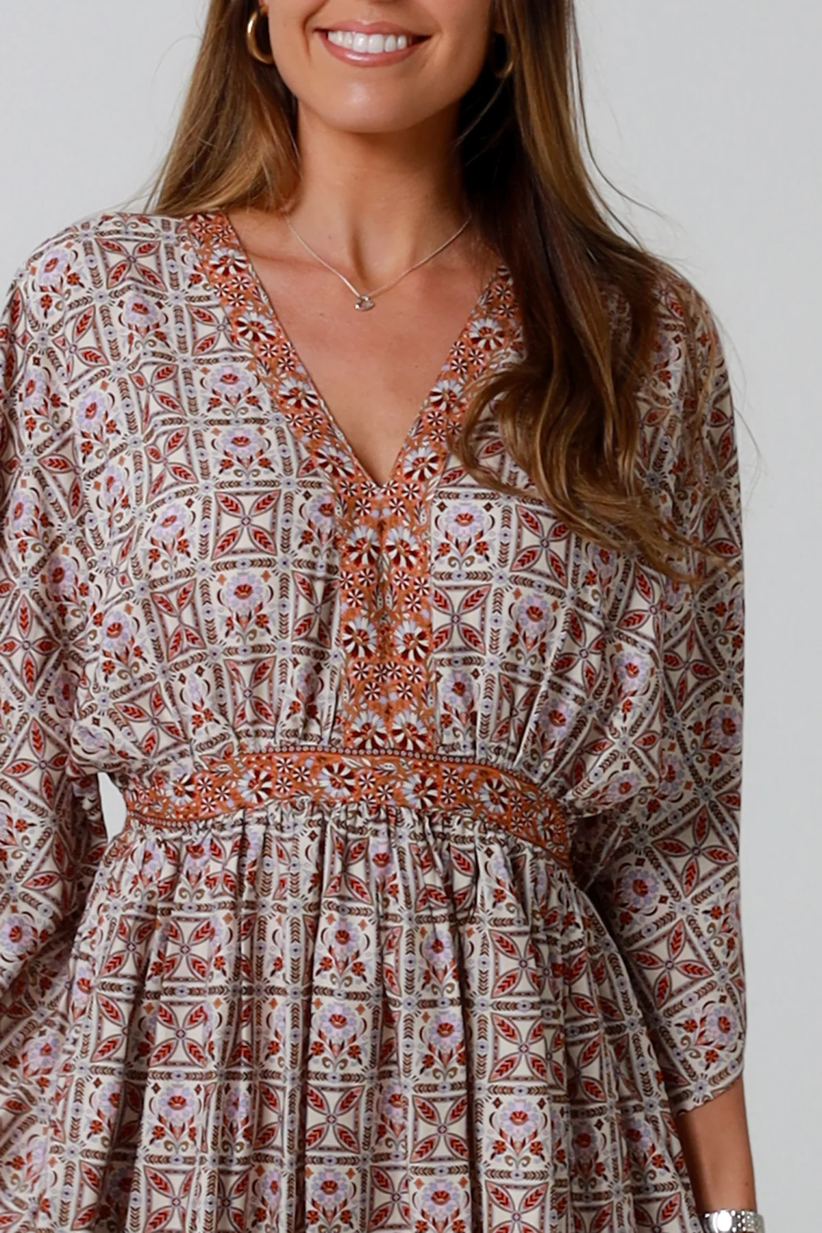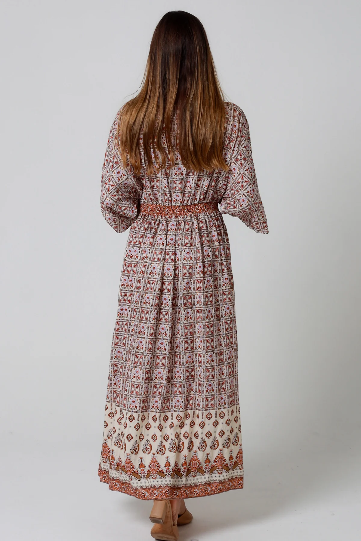 A gorgeous border print, inspired by earthy tones brings a touch of bohemian charm
